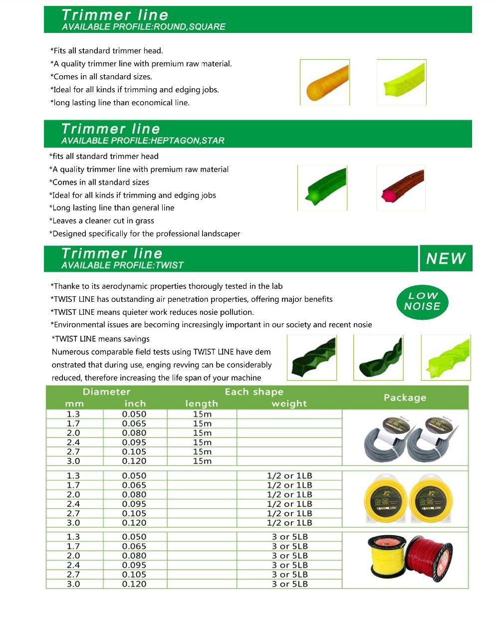 A NTEC fabrica linha de aparador de cordas há muitos anos na China, tem uma grande seleção de linha de aparador de substituição para aparadores de cordas que variam de 1,0mm a 4,0 mm de diâmetro e várias formas, embalagens.